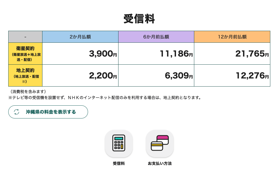 NHKのホームページによると、NHKの受信料は以下の通り